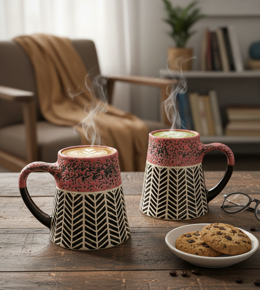 Whether you are styling a minimalist coffee station or looking for a statement piece for your desk, the “Artisan Contrast” design brings a sophisticated “Boho-chic” vibe to your space. The sturdy, weighted base ensures stability, while the ergonomically designed D-shape handle provides a secure and comfortable grip for every sip.