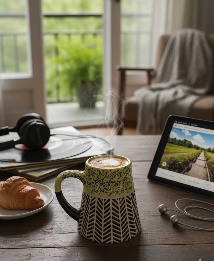 Whether you are styling a minimalist coffee station or looking for a statement piece for your desk, the “Artisan Contrast” design brings a sophisticated “Boho-chic” vibe to your space. The sturdy, weighted base ensures stability, while the ergonomically designed D-shape handle provides a secure and comfortable grip for every sip.