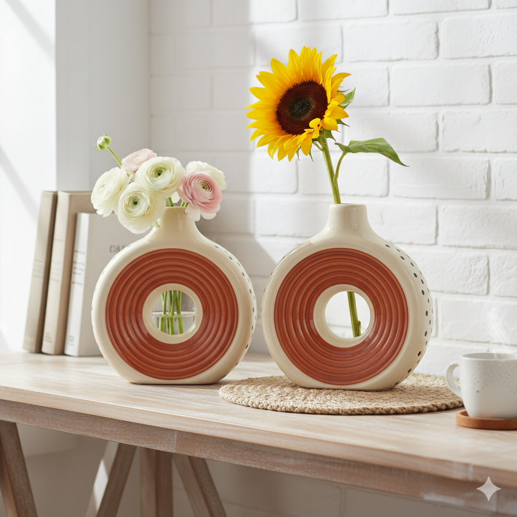 🌼 Modern Ceramic Donut Vase as a Decorative Centerpiece