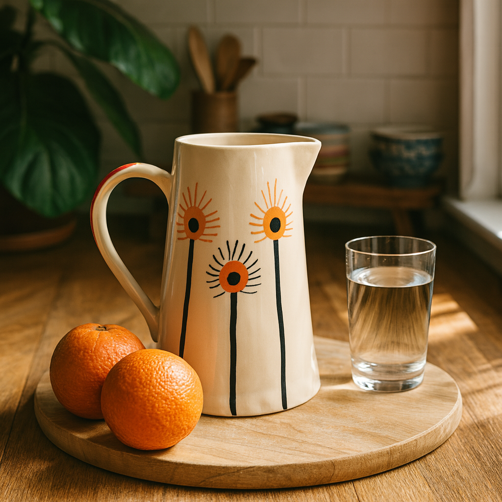 Ceramic Pitcher Jug – Beautiful Handcrafted Sunburst floral artwork