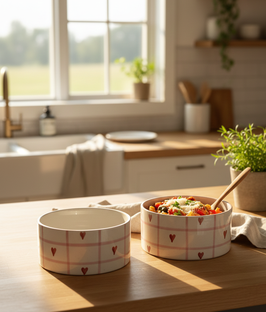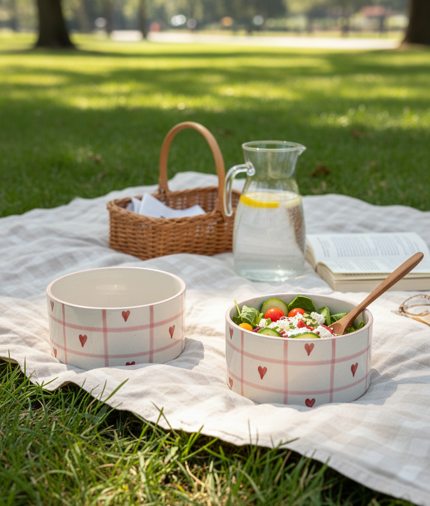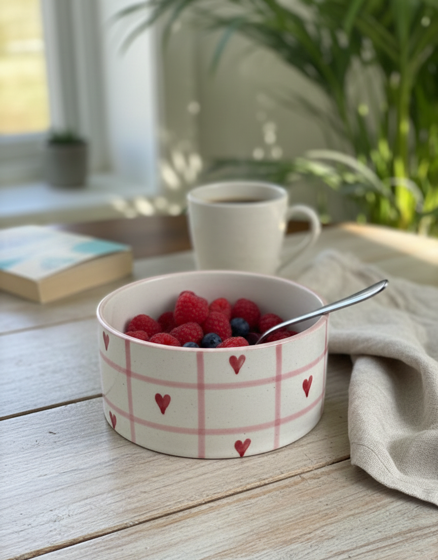 Be the first to review “Pink Gingham & Red Heart Ceramic Breakfast Bowl Set”